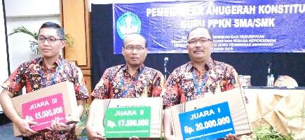 BATANG – Guru SMAN 1 Subah, Sugito SPd MSi berhasil meraih juara 1 Forum Ilmiah Guru PPkn SMA dan SMK Tingkat Nasional. Sebelumnya ia didaulat untuk mewakili Jawa Tengah dalam event yang digelar Dirjen Guru dan Tenaga Kependidikan Kemendikbud RI tersebut. Ia pun berhasil mengalahkan 50 peserta lain dari 30 provinsi se Indonesia. “Alhamduliah saya menjadi juara 1 tingkat nasion...
